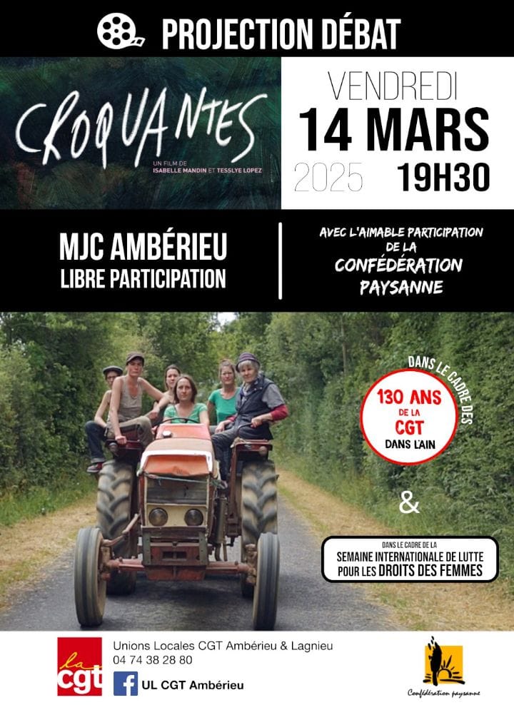 Du 10 au 26 mars 2025, la MJC d’Amberieu et le Centre Social Le Lavoir présentent NON mais Genre(s) : débats, ateliers, expo, films, spectacles Vendredi 14 mars 19h30 Amberieu-en-Bugey MJC Projection-débat des CROQUANTES (l’aventure collective d’agricultrices). Organisé par la CGT dans le cadre des 130 ans de la CGT dans l’Ain et de la semaine internationale de lutte pour le droit des femmes avec la participation de la Confédération Paysanne. Voir l’affiche-annonce Vendredi 14 mars 20h Bourg-en-Bresse au Cinémateur, La Grenette. Projection du film NO OTHERLAND avec débat animé par l’AFPS et le CCFD. Le film est projeté du 6 au 18 mars. L’affiche-Annonce En savoir plus...