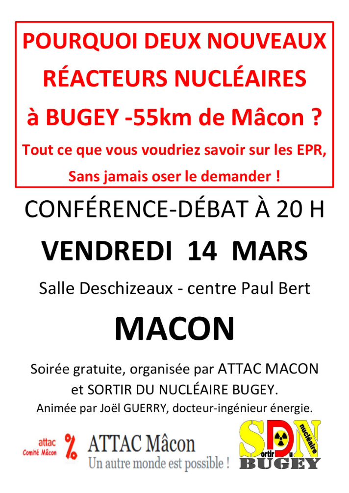 Vendredi 14 mars 20h MACON, salle Deschizeaux, Centre Paul Bert SDN-Bugey propose un tract 4 pages à largement utiliser si vous participez aux débats officiels publics