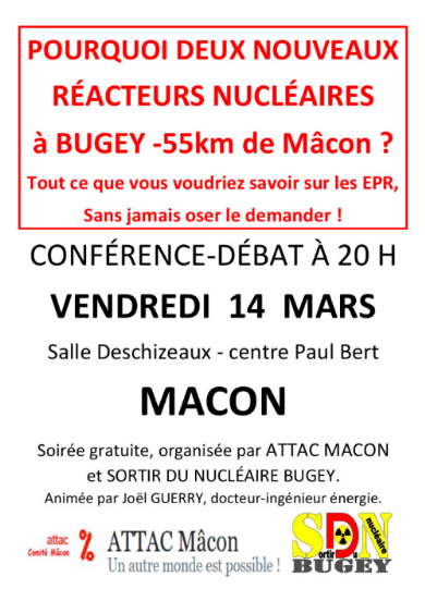 Vendredi 14 mars 20h MACON, salle Deschizeaux, Centre Paul Bert SDN-Bugey propose un tract 4 pages à largement utiliser si vous participez aux débats officiels publics