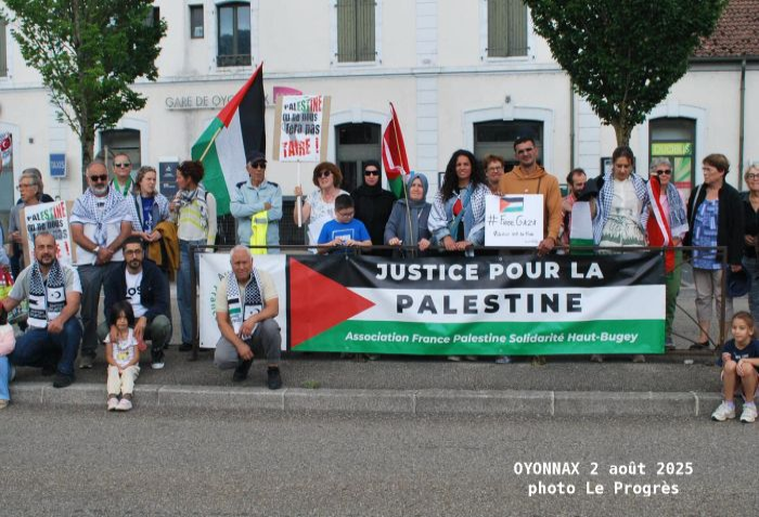 | | Samedi 9 août 10h30 Bourg-en-Bresse - rue du 19 mars 1962 (entre Rubis et le Beau Marché) Rassemblement de soutien au peuple palestinien