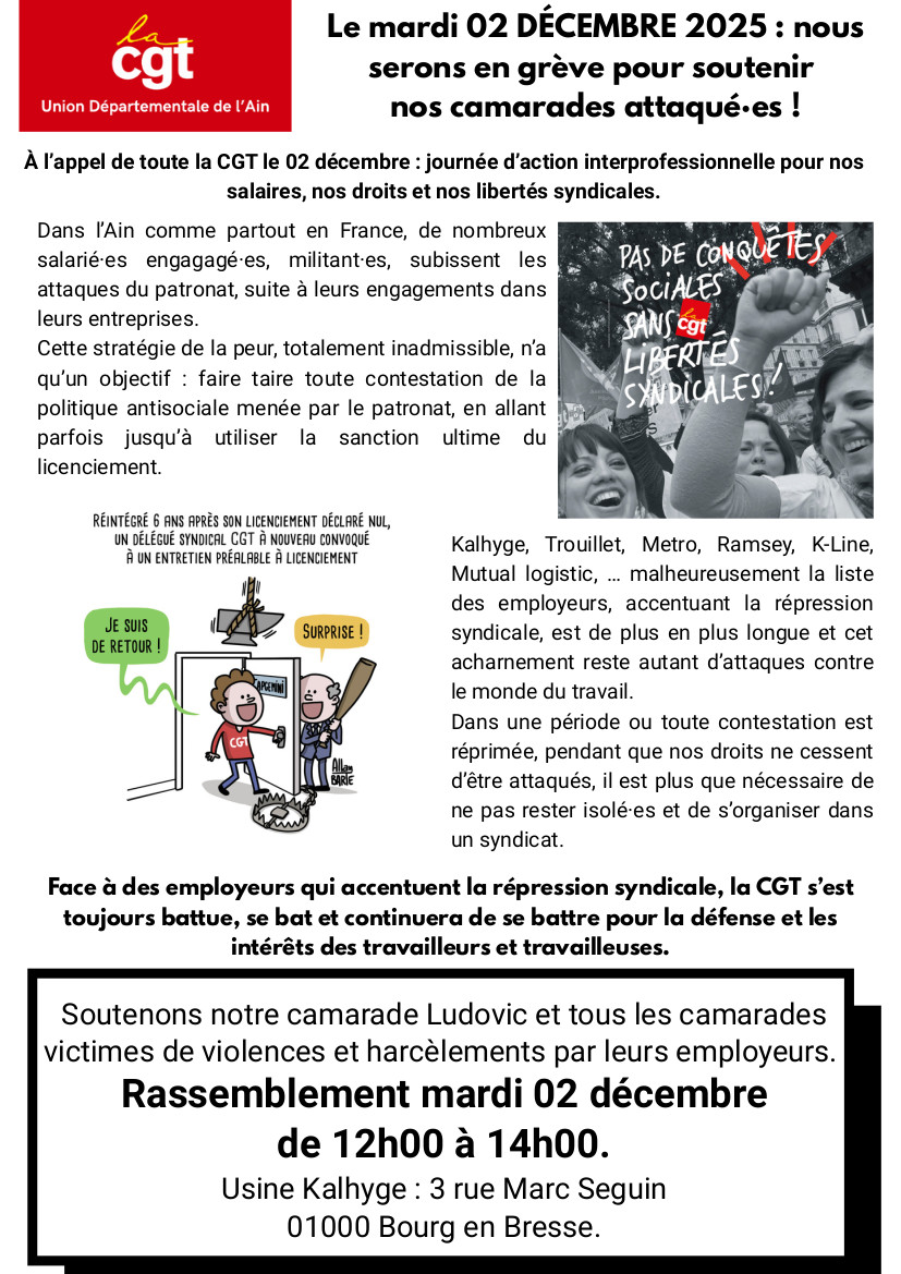Mardi 25 novembre 18h OYONNAX RV devant la cité Administrative.