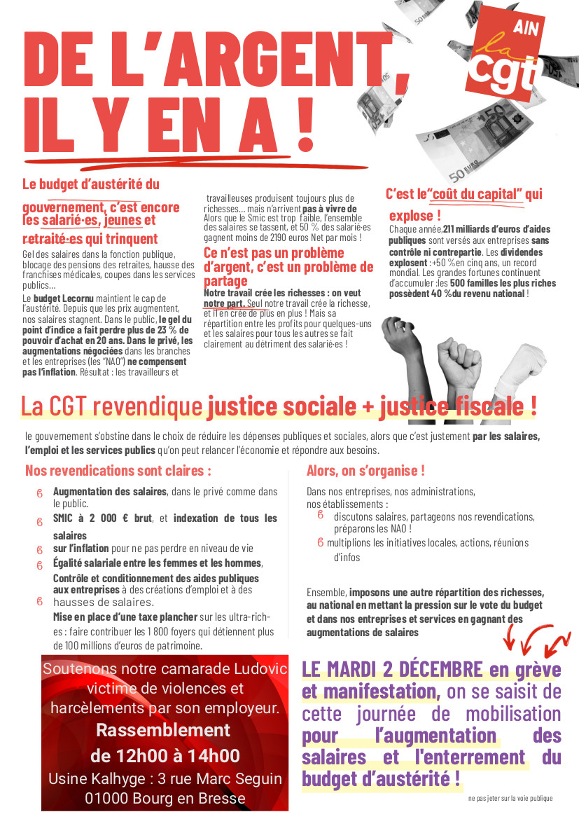 A Bourg-en-Bresse, Rassemblement 12-14h devant Blanchisserie Kalyge, rue Marc Seguin (Cénord) L' appel localMercredi 3 décembre 18h Péronnas, salle des Fêtes Les impacts humains du changement climatique, Conférence-débat de François GEMENNE, auteur principal du rapport de GIEC. Proposée par la MAIF et l’AGLCA. Attac Bourg-en-Bresse n’est pas à l’origine de l’évènement mais relaie bien volontiers cette initiative intéressante. ATTENTION : Évènement ouvert à tous mais inscription obligatoire sur https://entreprise.maif.fr/actualites/conference-impacts-humains-du-changement-climatique La conférence est précédée à 14h de l’ atelier Fresque du climat animé par l’ AGLCA Inscription obligatoire à la même adresse ci-dessus