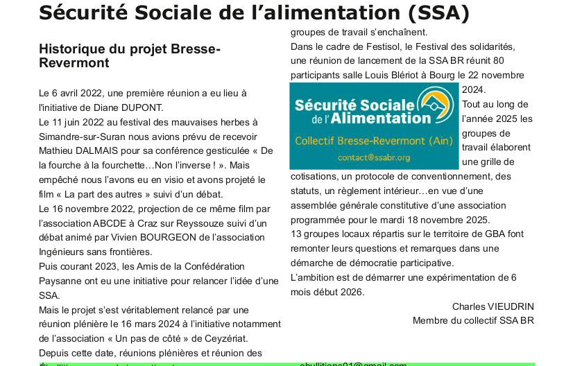 L'historique de la SSA Bresse-Revermont ci-contre est tiré de la Revue Ebillitions novembre-décembre 2025 qui vient de sortir. |