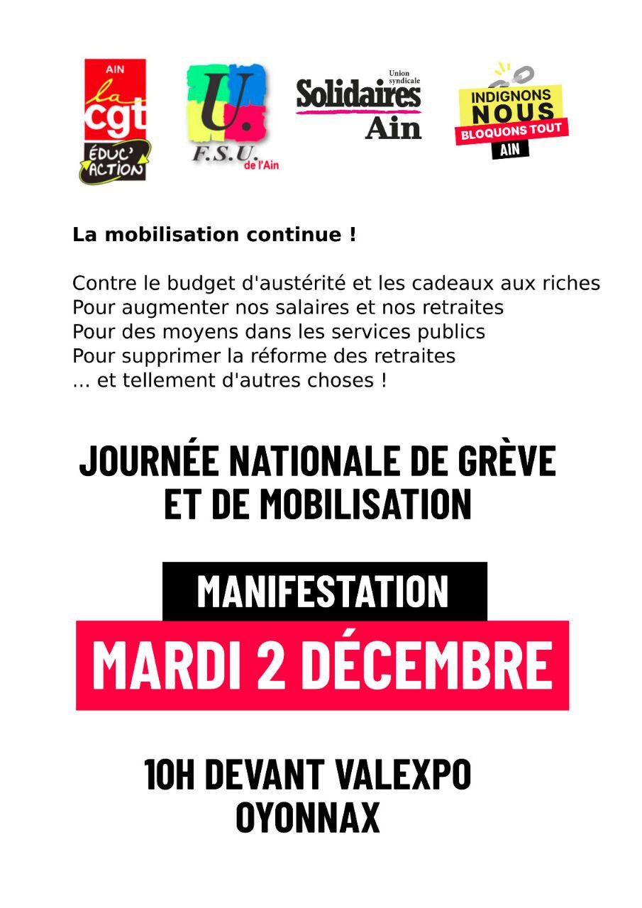 | . Mercredi 18h15 Oyonnax, Parc René Nicod. AG du groupe local Indignons-nous Bloquons tout (Tous les mercredis)