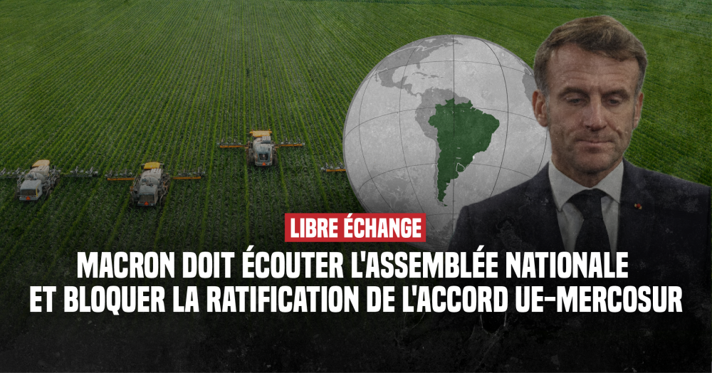 | Ce jeudi 27 novembre, les député·es ont voté à la très grande majorité une résolution « invitant le Gouvernement de la République française à s’opposer à l’adoption de l’accord commercial entre l’Union européenne et le Mercosur ». Le collectif national Stop-Mercosur, dont Attac est membre, se félicite de ce message ferme et clair alors qu’E. Macron se dit désormais « positif » sur cet accord. Il est toujours possible de bloquer l’accord UE-Mercosur, nous appelons E. Macron à se mobiliser en ce sens. |