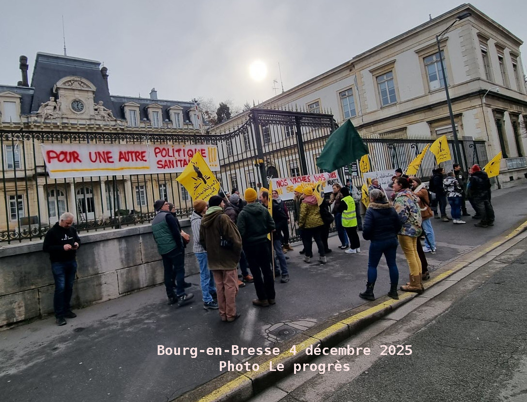 | Confédération paysanne https://ain.confederationpaysanne.fr/ La confédération Paysanne de l’Ain était devant la préfecture le jeudi 4 décembre pour demander une autre politique sanitaire. Le communiqué de presse de la Conf Écouter aussi l’émission sur radio-B