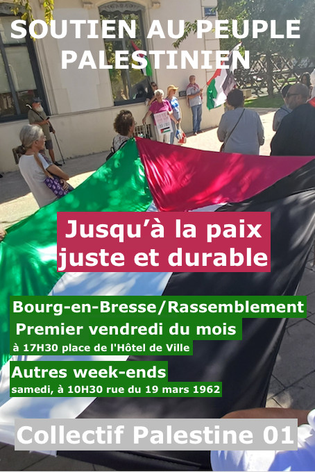 Samedi 10 janvier 2026 10h30 rue du 19 mars 1962 (en face Rubis et Beau Marché) Rassemblement de soutien au peuple palestinien de GAZA et de Cisjordanie