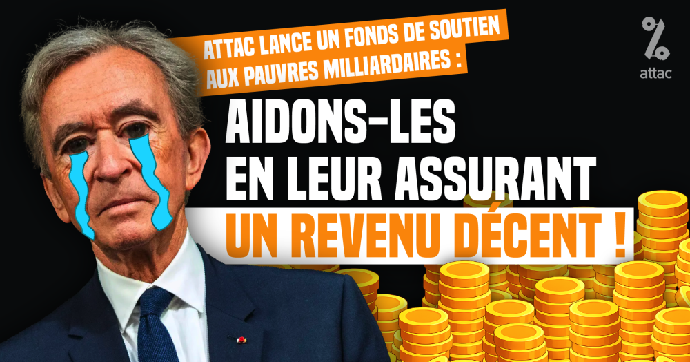 | Attac lance un fonds de soutien aux pauvres milliardaires : aidons-les en leur assurant un revenu décent ! |