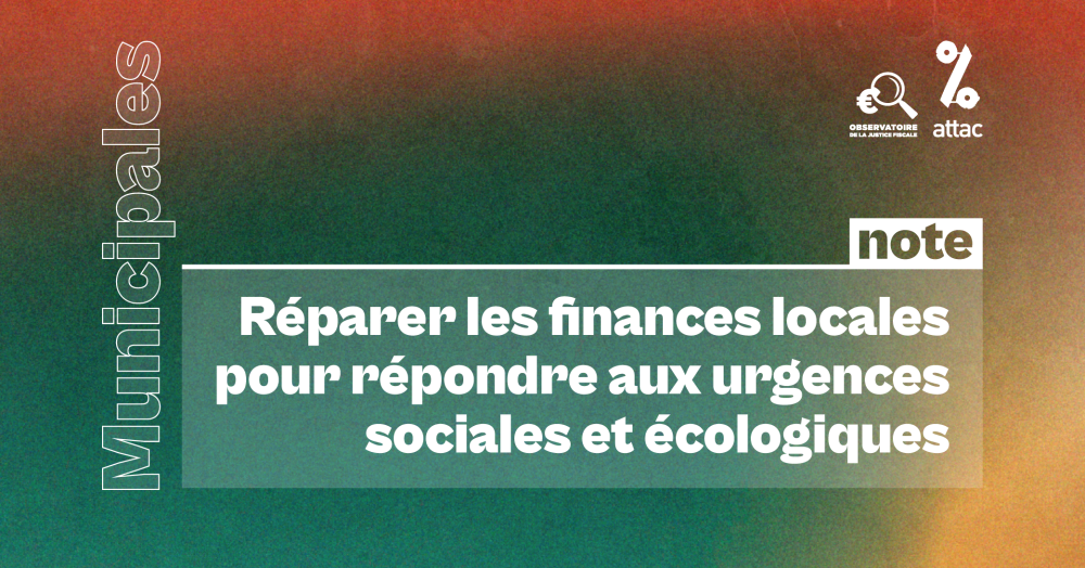 | Attac et l’Observatoire de la justice fiscale publient une note sur le devenir des finances publiques locales. La campagne des municipales doit être l’occasion d’impulser un véritable débat citoyen sur le financement des services publics locaux et des solidarités locales. Télécharger la note commune Attac et Observatoire de la Justice fiscale |