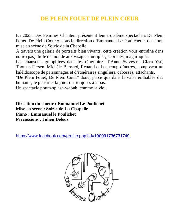 Samedi 21 mars 20h30 Bourg-en-Bresse MCC, 4 allée des Brotteaux Des femmes chantent De plein Fouet, de plein Cœur L'affiche-Annonce